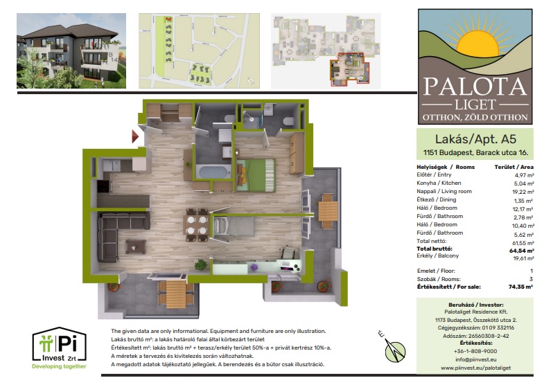 A Palota Liget lakásai értékálló befektetésként is kiemelkedő lehetőséget kínálnak. A beruházást jegyző Pi Invest Zrt. tapasztalata és a fenntarthatóság iránti elkötelezettsége biztosítja a projekt kiemelkedő minőségét. Emellett a vásárlók számára elérhető a VIP ingatlankezelő szolgáltatás is (www.vip-properties.hu), amely akár teljeskörűen átvállalja az ingatlan üzemeltetését és bérbeadását. A rugalmas fizetési konstrukció – 20% a szerződéskötéskor, 80% csak az átadáskor – tovább növeli a Palota Liget vonzerejét. Különösen, hogy a lakások már 1 millió forint regisztrációs díjjal leköthetők, így érdemes még most lépni, a várható áremelkedések előtt.