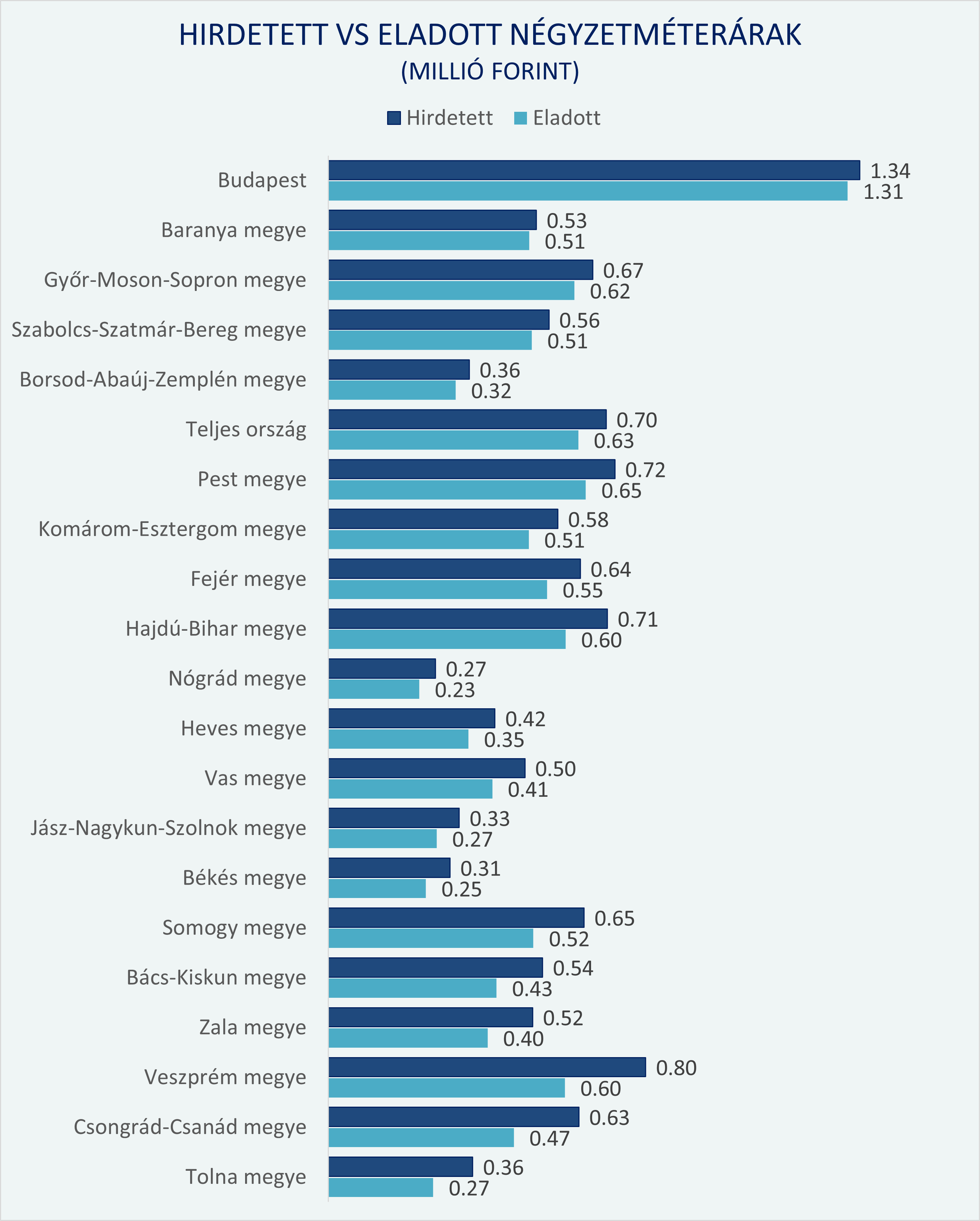 Hol a legnagyobb a szakadék a hirdetett és az eladott árak között?