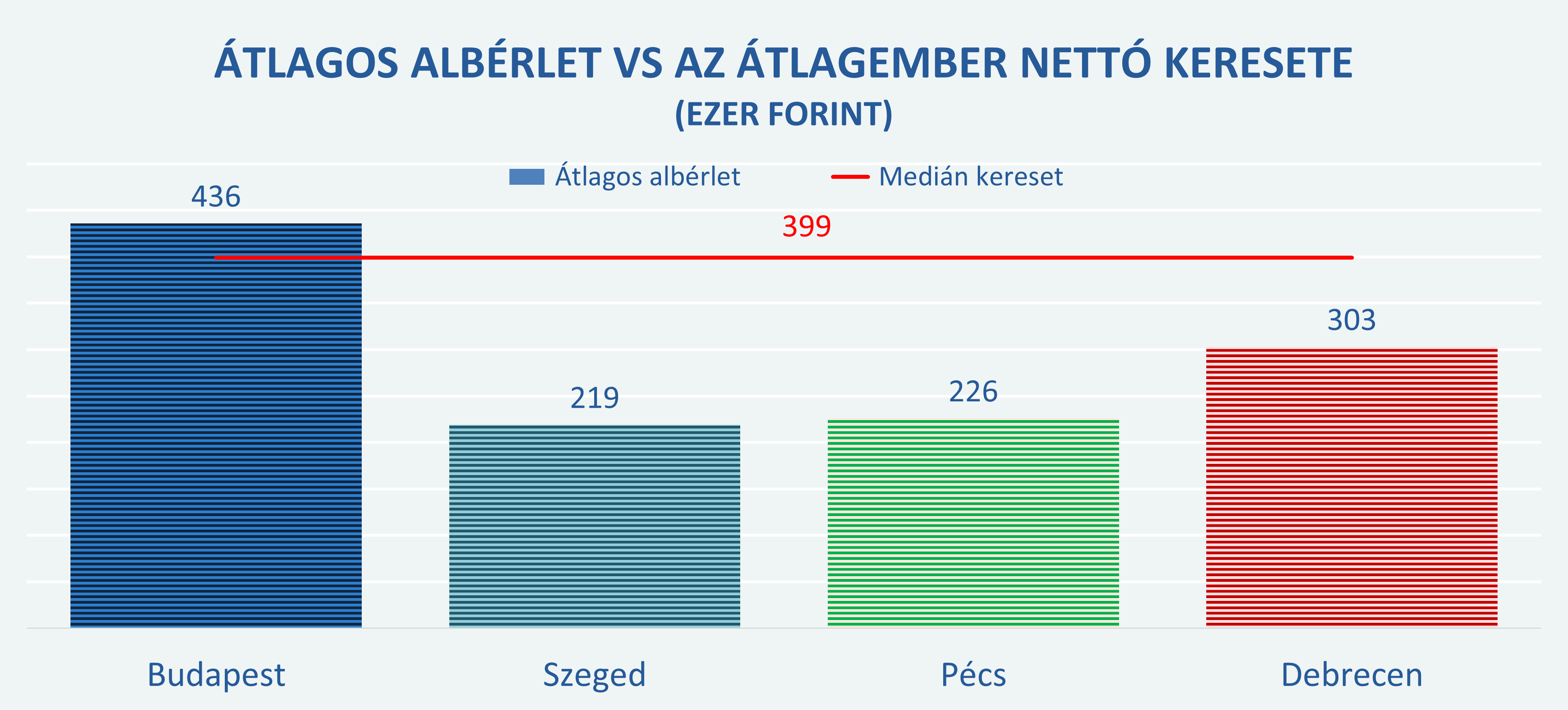 A bérleti díjak megtorpanása nem meglepő, ha a fizetések felől nézzük a kérdést. Régi barátunk, Átlag János évek óta alig tud lépést tartani az árakkal. A legfrissebb adatok szerint a medián nettó kereset országosan 399 ezer forint körül alakul, miközben egy átlagos fővárosi albérletért 436 ezret kérnek havonta. Vagyis a legtöbb bérlő számára ma már egy teljes fizetés sem fedezi a lakhatás költségét, nemhogy a rezsit vagy az egyéb kiadásokat.