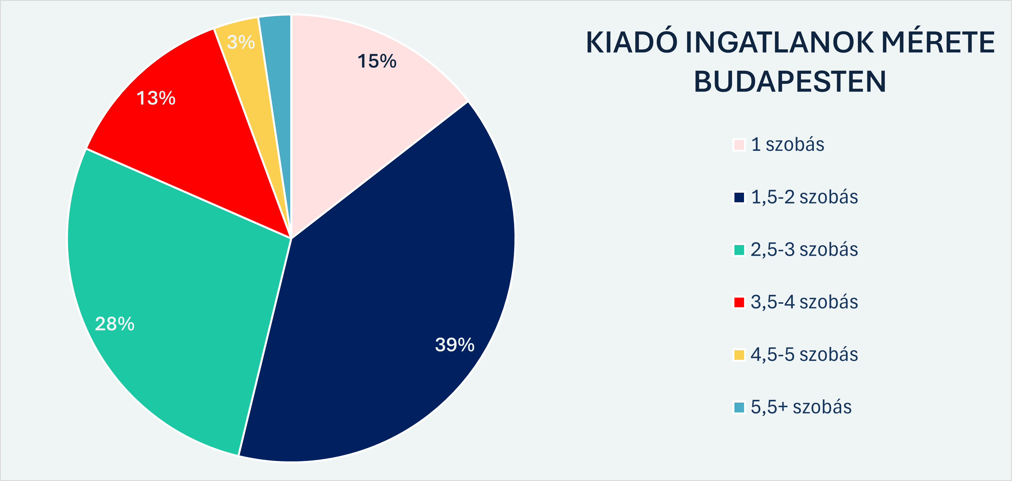 A fővárosban a kiadó lakások több mint fele legfeljebb kétszobás: a 1,5–2 szobás lakások aránya önmagában 39 százalék, az egyszobásoké pedig 15 százalék. Eközben tízből csupán két hirdetés vonatkozik három szobásnál nagyobb lakásra.