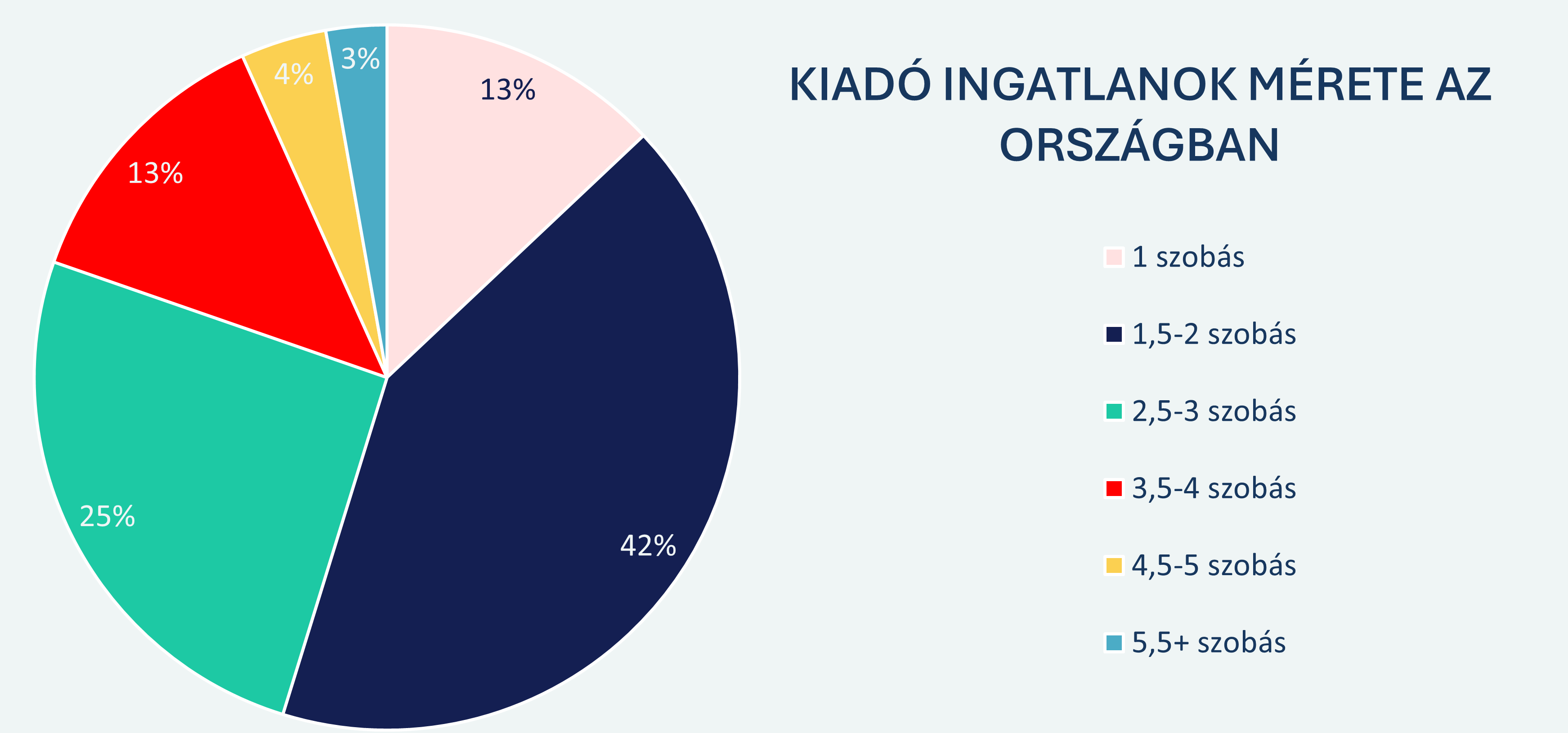 Országos szinten a kép hasonló, bár hajszálnyival több a kisebb alapterületű ingatlan: az egy- és kétszobások együtt az összes kiadó lakás 55 százalékát adják.