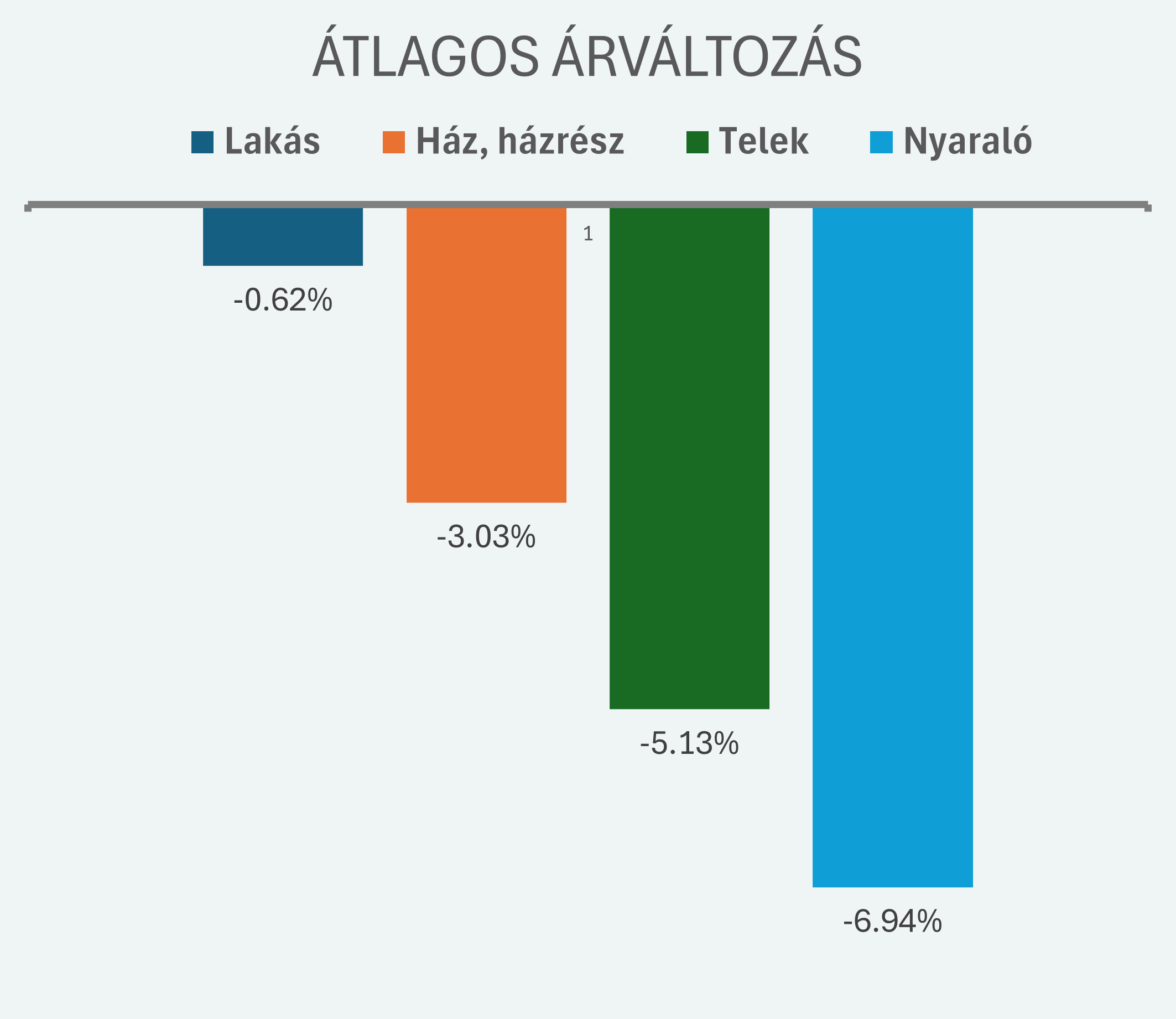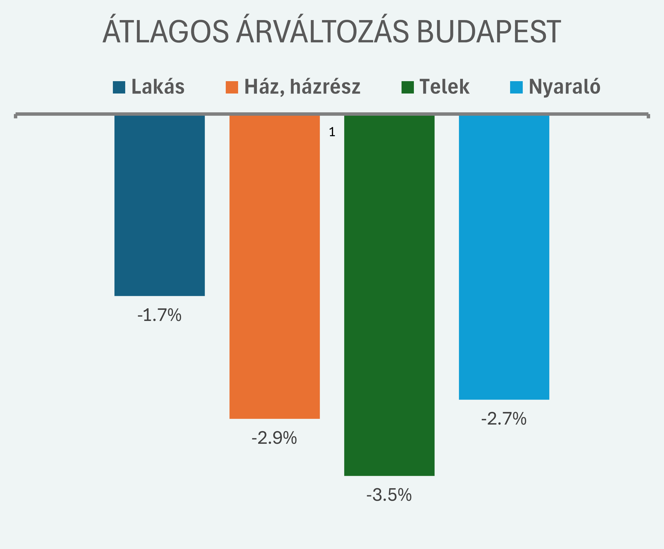 A mostani adatok alapján jól látszik, hogy nem minden ingatlantípus reagál egyformán a piaci bizonytalanságra. Budapesten az átlagos árváltozás a lakásonál volt a legkisebb és a telkeknél a legnagyobb.
