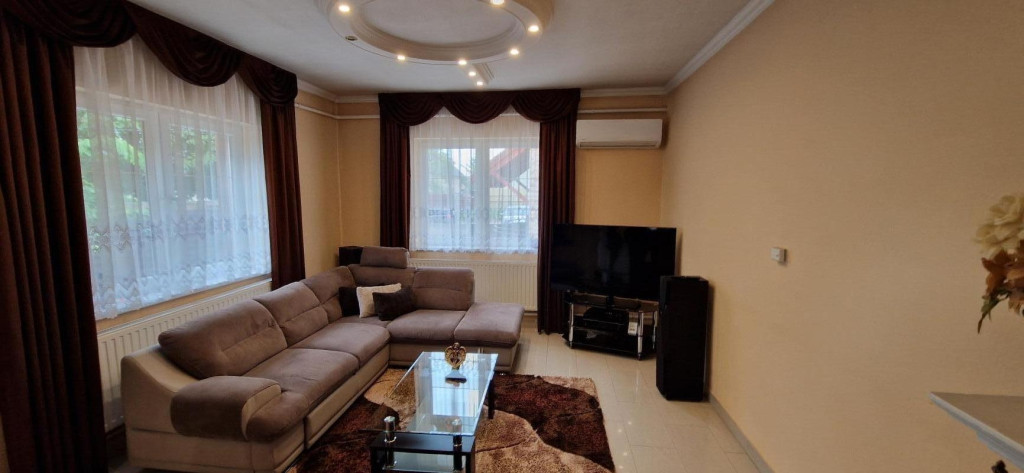 Ez a teljeskörűen felújított családi ház egy 1280 négyzetméteres, gondozott kertben áll, kerti tóval és grillterasszal, így egyszerre kínál nyugodt lakókörnyezetet és reprezentatív megjelenést. Az alsó szinten található, 110 négyzetméteres üzlethelyiség könnyen külön lakrésszé alakítható, míg a felső szinten amerikai konyhás nappali, három hálószoba és terasz kapott helyet. A korszerű műszaki tartalom, a kiváló szigetelés és a vasútállomás közelsége miatt az ingatlan ideális választás lehet akár otthoni vállalkozásra is, és Otthon Start hitellel is elérhető.