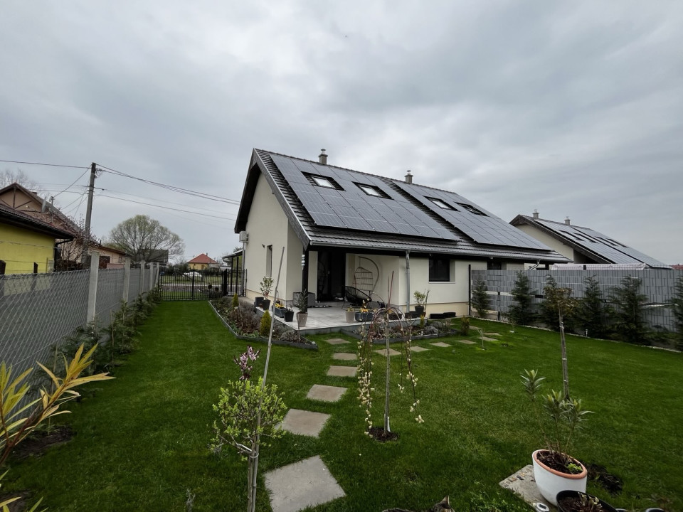 Pest megye nyugodt, mégis jól megközelíthető településén, Hévízgyörkön kínálnak eladásra egy 2021-ben épült, modern ikerházfelet, amely fenntartható műszaki megoldásaival tűnik ki. A 80 négyzetméteres lakótérben nappali, két tágas szoba és egy félszoba kapott helyet, valamint két teljes értékű fürdőszoba segíti a kényelmes mindennapokat. A ház egyik legnagyobb előnye a 8 kW-os napelemrendszer, amely még évekig kedvező elszámolásban működik, így a rezsiköltség minimális szinten tartható. Elektromos padlófűtés, hűtő-fűtő klíma, 300 négyzetméteres saját telekrész, fedett autóbeálló, kiépített kert, magaságyások és több kerti tároló teszik teljessé az ingatlant, amely első otthonnak és befektetésnek is vonzó.