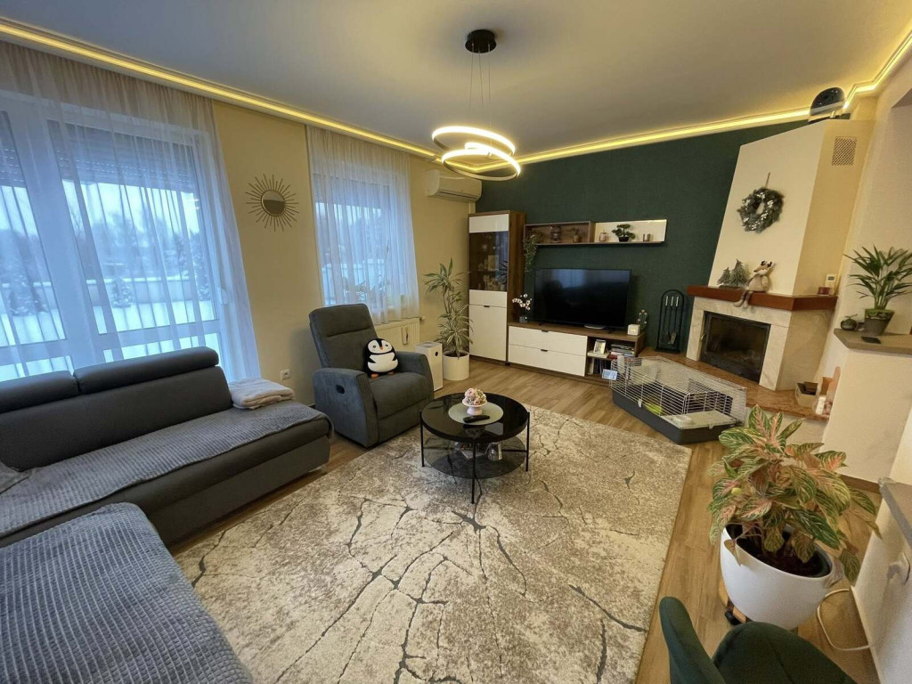 Hatvan központi részén érhető el ez a belső kétszintes, nettó 170 négyzetméteres, négyszoba plusz amerikai konyhás nappalis, sorházi szélső lakás, amely az elmúlt években átfogó korszerűsítésen esett át. Az épület új hőszigetelt nyílászárókat és külső szigetelést kapott, a fűtést kondenzációs kazán és puffertartály biztosítja, amit napkollektor és kandalló egészít ki. A villamosenergia igényt napelemrendszer segít fedezni, a garázsban elektromos autó töltési lehetőség is kialakított. A 450 négyzetméteres telken automata öntözőrendszer, fedett medence és kerti sütögető található. A belvárosi elhelyezkedés miatt üzletek, iskolák, közlekedési csomópontok és szolgáltatások rövid távolságon belül elérhetők, ami családosoknak különösen praktikus.