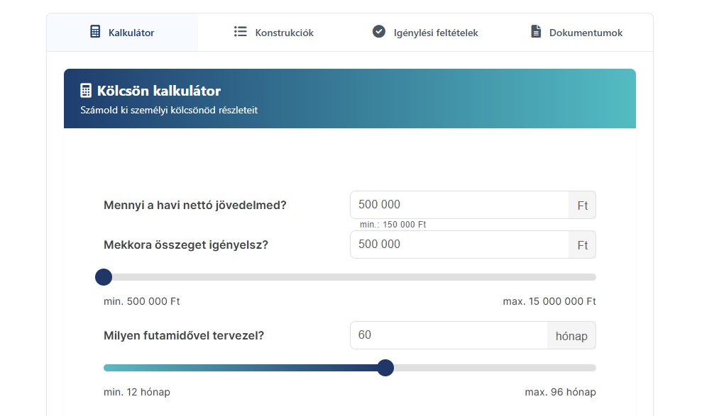 A döntés előtt azonban kulcskérdés, hogy pontosan lásd: mekkora összeget vehetsz fel, milyen havi törlesztővel számolhatsz, és milyen feltételek mellett érhető el a kölcsön. Ebben nyújt valódi segítséget az Ingatlantájoló oldalán elérhető személyi kölcsön kalkulátor.