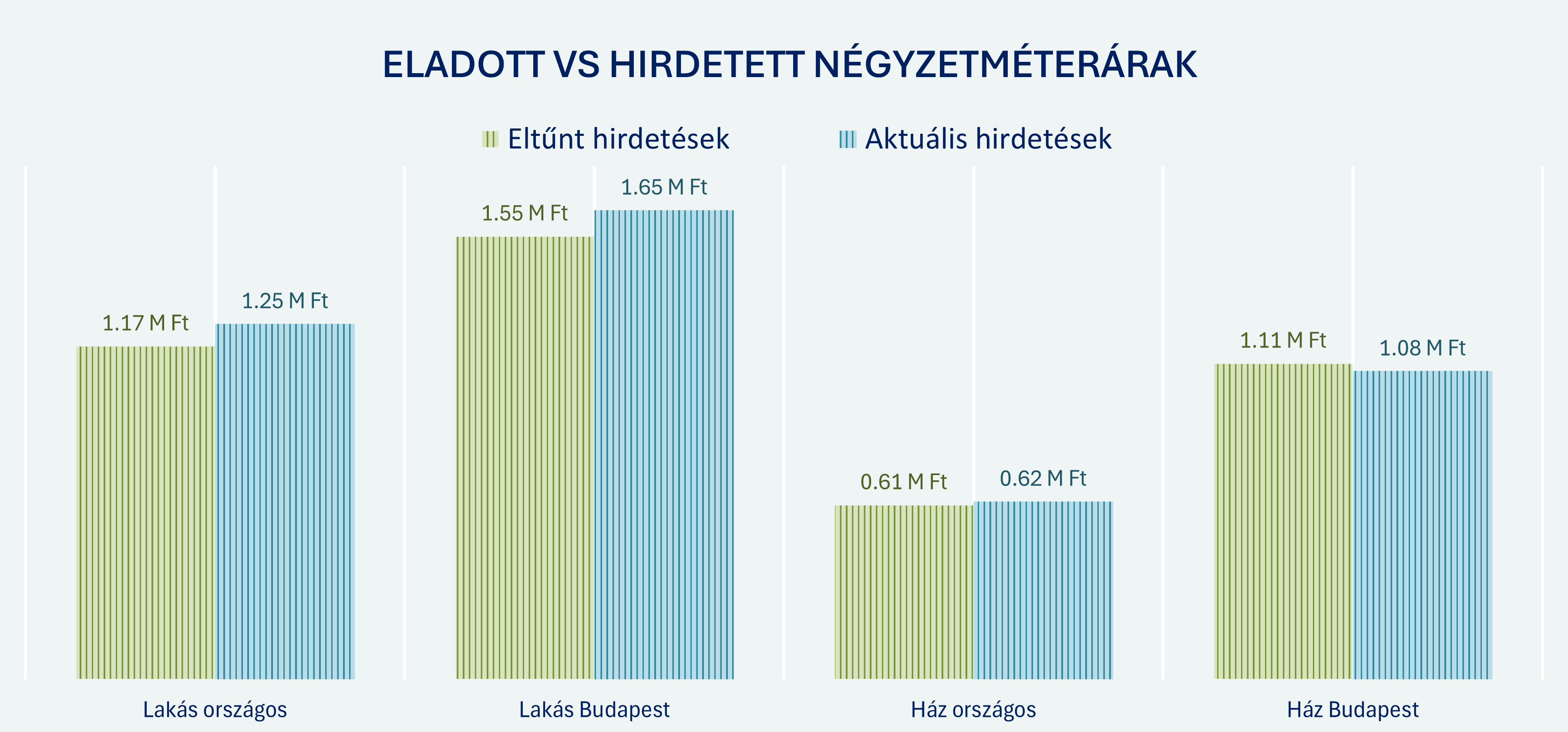 Fontos hangsúlyozni: ez önmagában nem meglepő jelenség. A hirdetési árak természetüknél fogva magasabbak, hiszen tartalmazzák az alku lehetőségét, és a piacon maradó - lassabban forgó - ingatlanok gyakran drágábbak az átlagosnál.