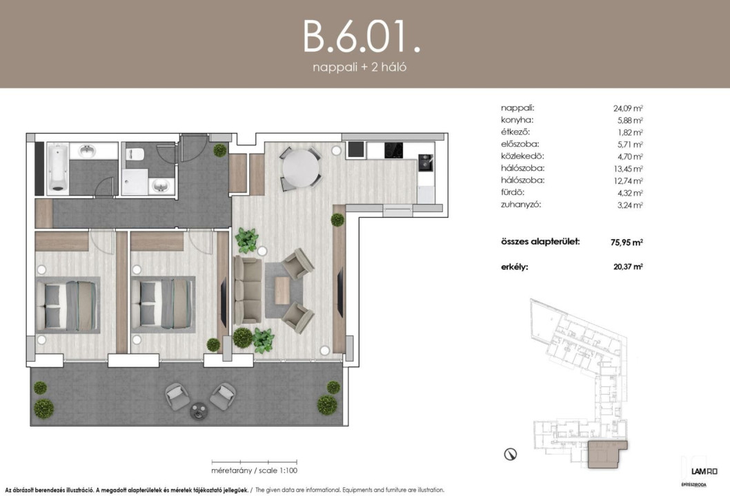 A közel 76 négyzetméteres alapterületű, több mint 20 négyzetméteres terasszal rendelkező lakás kínálati ára 149,5 millió forint, ami 1,74 millió forintos négyzetméterárnak felel meg. Ez az árszint jól illeszkedik a budapesti új építésű lakások jelenlegi prémium szegmenséhez, különösen a XIII. kerület népszerű részein.