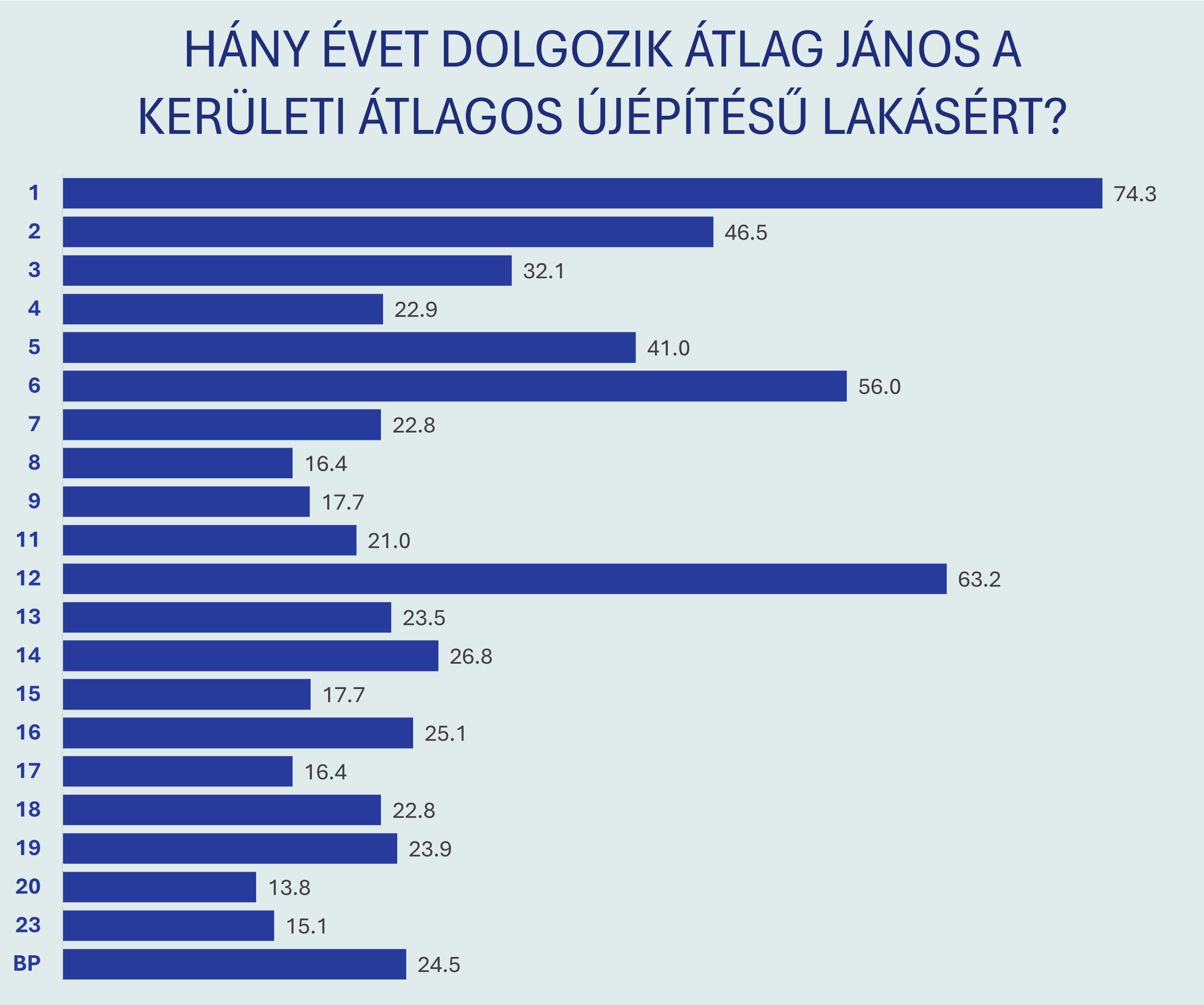 Ezzel szemben a külsőbb kerületekben jóval „rövidebb” idő alatt is elérhető egy új lakás, bár még ezekben az esetekben is jellemzően 15–20 évnyi jövedelemről beszélünk.