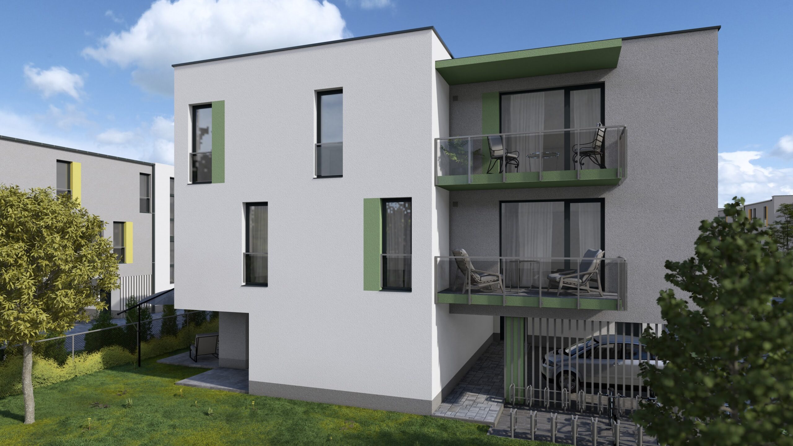 - A földszinti lakások közvetlen kertkapcsolattal rendelkeznek