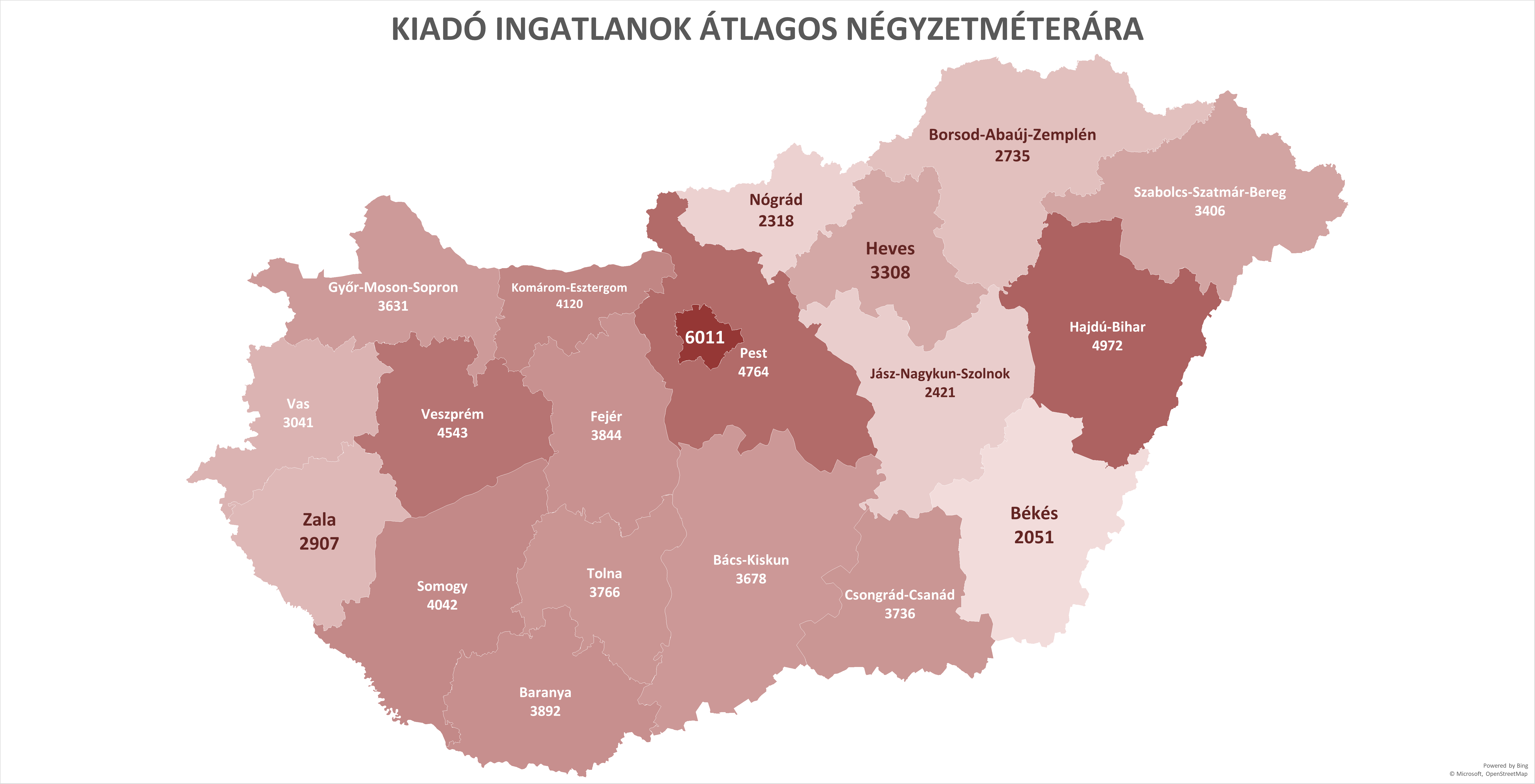 Térképen az ország: négyzetméterárak megyénként