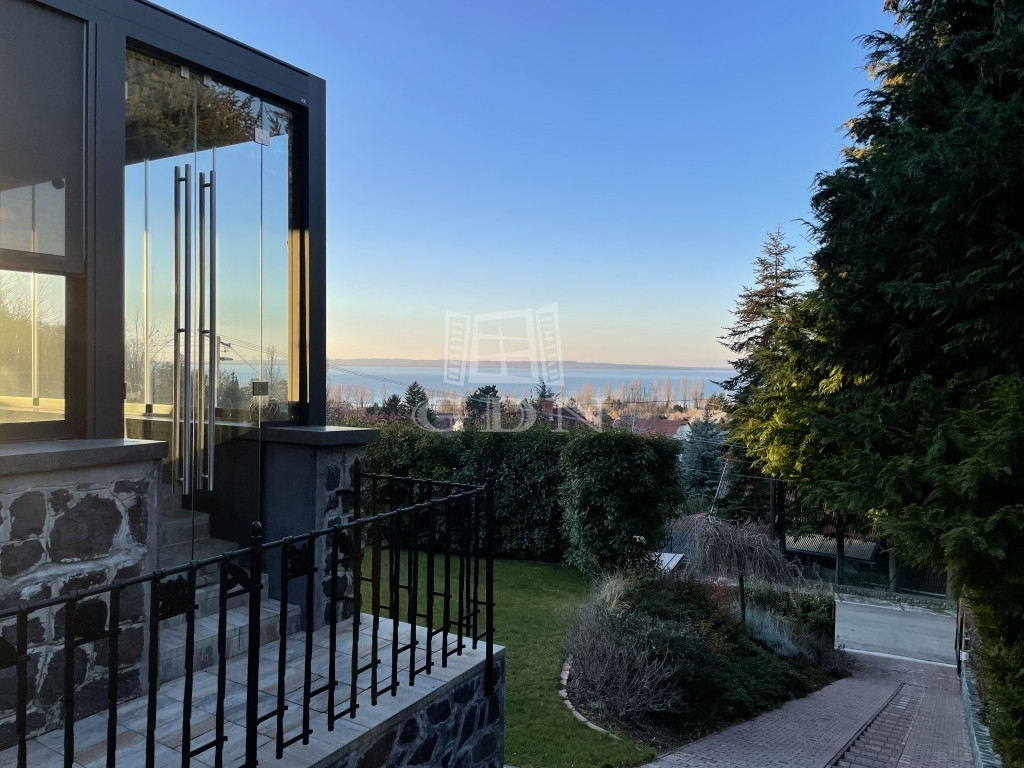 Szigliget egyik legnagyobb vonzereje a nyugodt, különleges balatoni hangulat, és ezt tökéletesen visszaadja ez az örök panorámás családi ház is. Az 1581 négyzetméteres telken fekvő ingatlanból lenyűgöző kilátás nyílik a Balatonra, miközben a strand is mindössze 600 méterre található. A ház korszerű műszaki megoldásokat kínál, többek között hőszivattyút, napelemet, klímát, gépesített konyhát és motoros árnyékolókat, a parkosított kertben pedig automata öntözőrendszer is működik. A nagy terasz, a cserépkályha, a fedett autóbeállók és a választható jakuzzi mind hozzájárulnak ahhoz, hogy ez az ingatlan egyszerre legyen kényelmes nyaraló és exkluzív balatoni menedék.