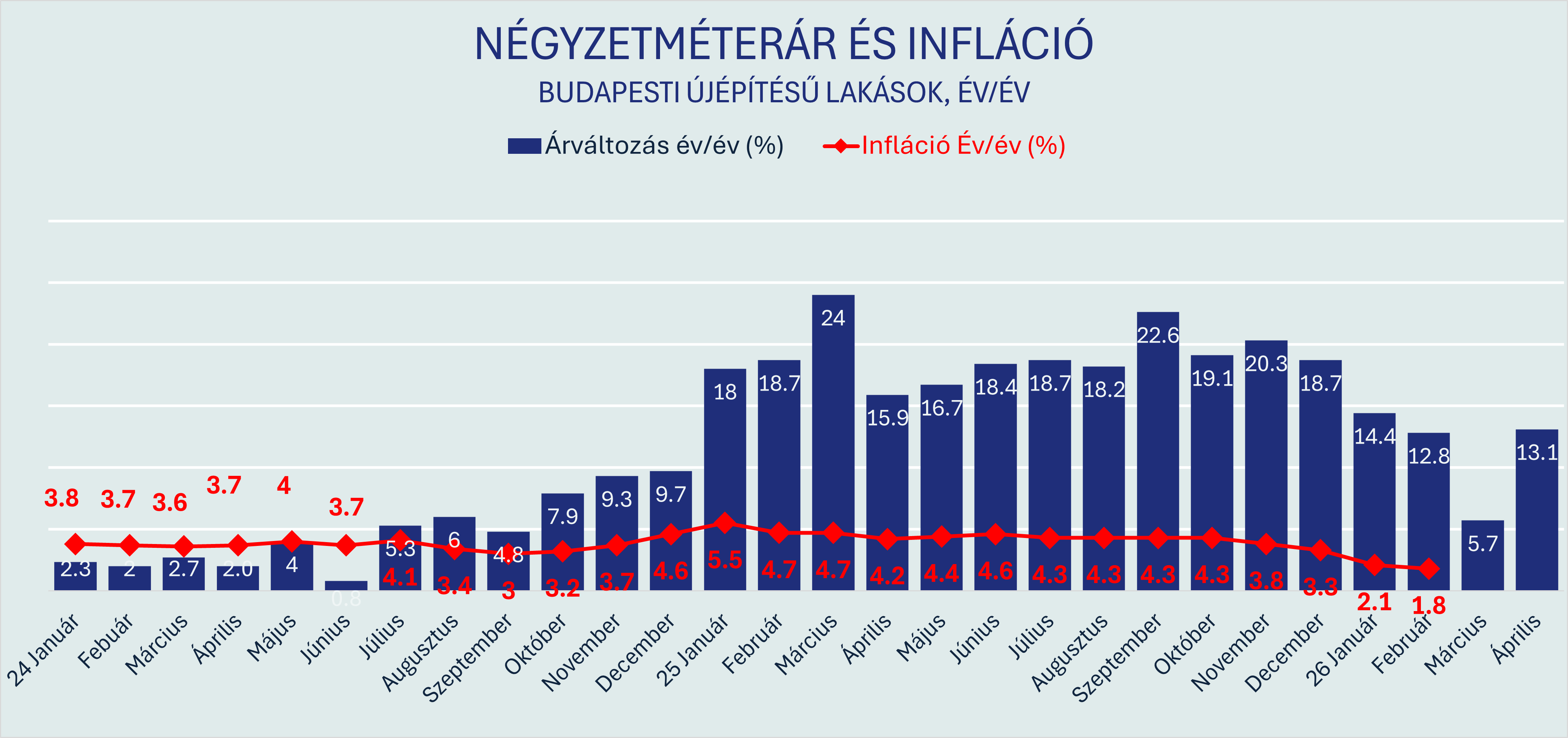 A budapesti újépítésű lakáspiac az elmúlt két évben szinte megszakítás nélkül emelkedett - árban, kínálatban és keresletben egyaránt. Az Ingatlantájoló adatai szerint az éves árnövekedés üteme 2026 elején érezhetően mérséklődött, majd márciusban egy rövidebb visszaesést is hozott az előző évhez képest: sokan ekkor kezdtek trendfordulóról beszélni. Az április azonban más képet mutat: az év/év alapú összehasonlításban a növekedés ismét pozitív tartományba fordult, ami azt jelzi, hogy a piac egyelőre nem lépett be tartós lassulási fázisba.