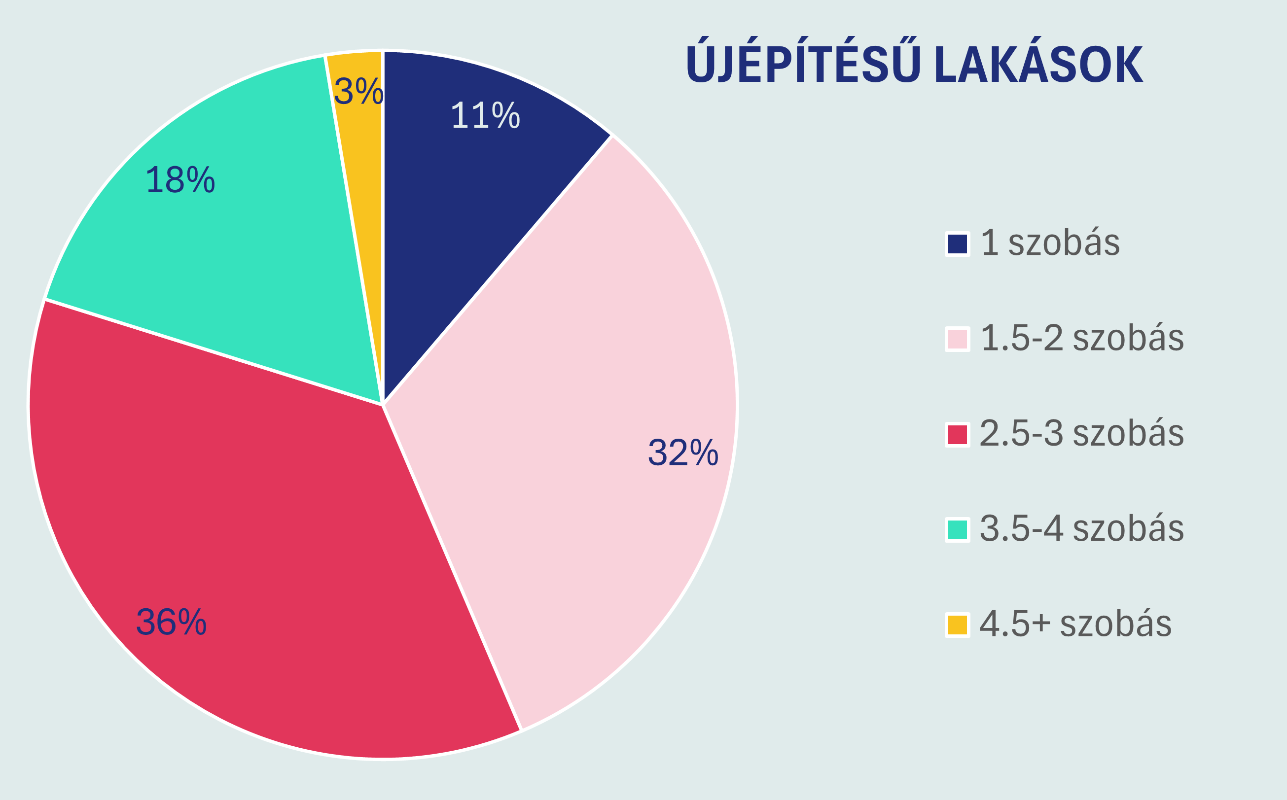 A kínálat szerkezete áprilisban sem változott drasztikusan az előző évhez képest. Az egy- és kéthálószobás lakások adják a kínálat kétharmadát. A garzonlakások aránya kissé emelkedett, a 4,5 szobásnál nagyobb lakások viszont mostanra mindössze 3 százakot tesznek ki. Ezek az egy-két százalékpontos elmozdulások azonban inkább lassú alkalmazkodást, mint éles trendfordulatot tükröznek.