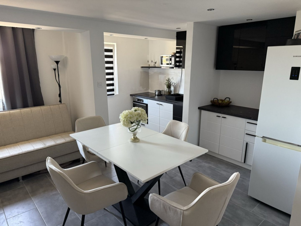 Veszprém Újtelep részén egy 117 négyzetméteres, teljeskörűen felújított lakás várja új tulajdonosát. Négy hálószoba és egy amerikai konyhás nappali biztosítja a kényelmes életteret, miközben a kertkapcsolat és a saját udvar valódi családi otthonná teszi az ingatlant. A jó szigetelés és a gázfűtés kedvező fenntartást ígér, a kétállásos garázs pedig ritka extra ebben a kategóriában.