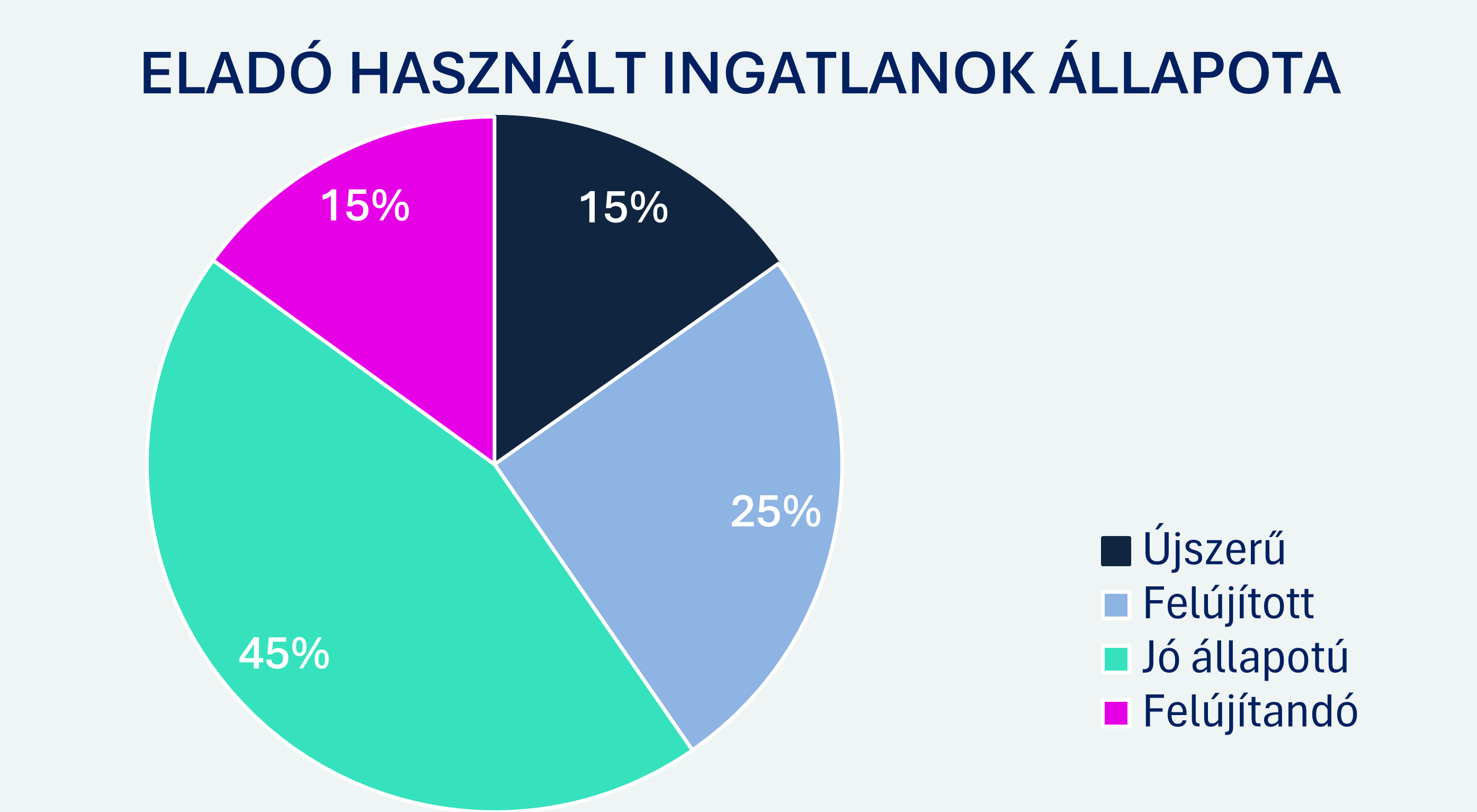 A két véglet (felújítandó illetve újszerű) egyaránt 15-15 százalékot tesz ki.